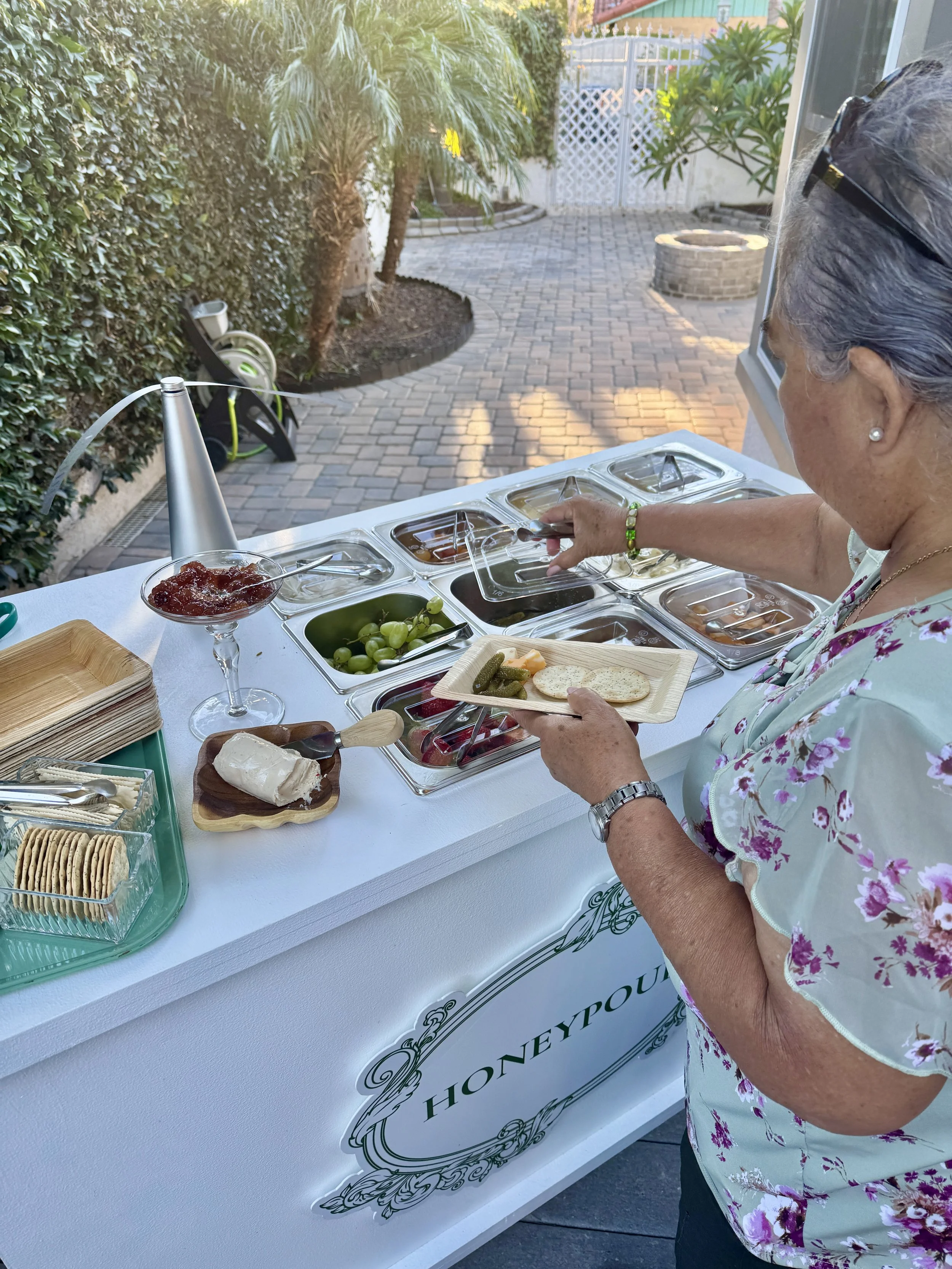 A stunning display of artisanal cheeses, cured meats, fresh fruits, and gourmet bites—beautifully arranged on a customizable cart. Perfect for weddings, showers, and intimate gatherings.
